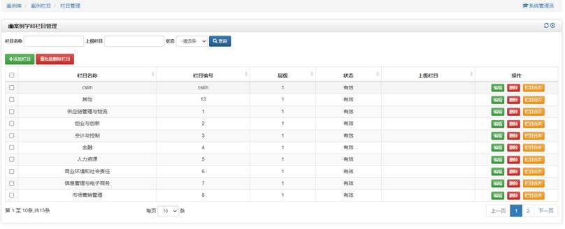 基础信息包括案例学科分类栏目管理,案例投稿相关政策法规文件的上传、案例基本相关信息数据字典维护等。