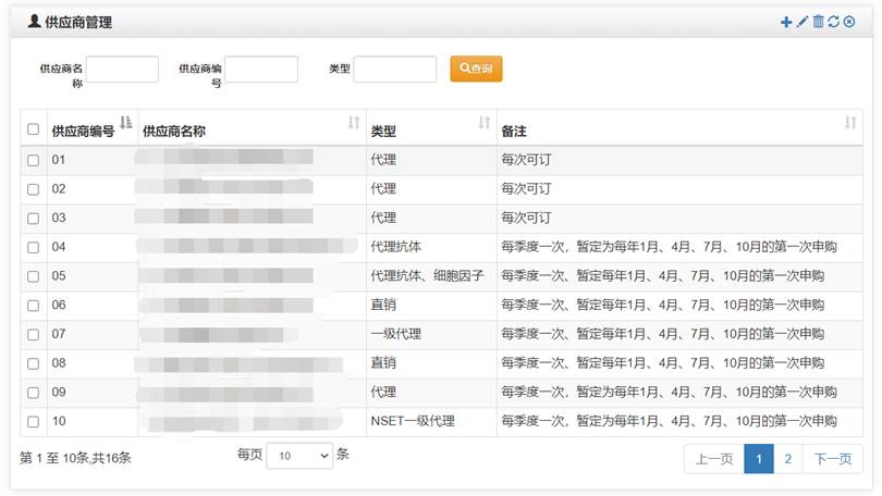 管理员可以定期进行维护更新供应商信息,所有成员可以在申购时进行供应商的选择。