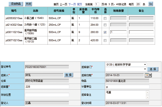 可为各个实验室设立耗材仓库,自行管理各自的耗材;各仓库管理员可建立本仓库的耗材分类,对所有耗材进行编码;可填写采购计划单,验收入库后增加库存;可填写耗材消耗单,出库后减少库存;可查询耗材库存,进行出入库结存统计。